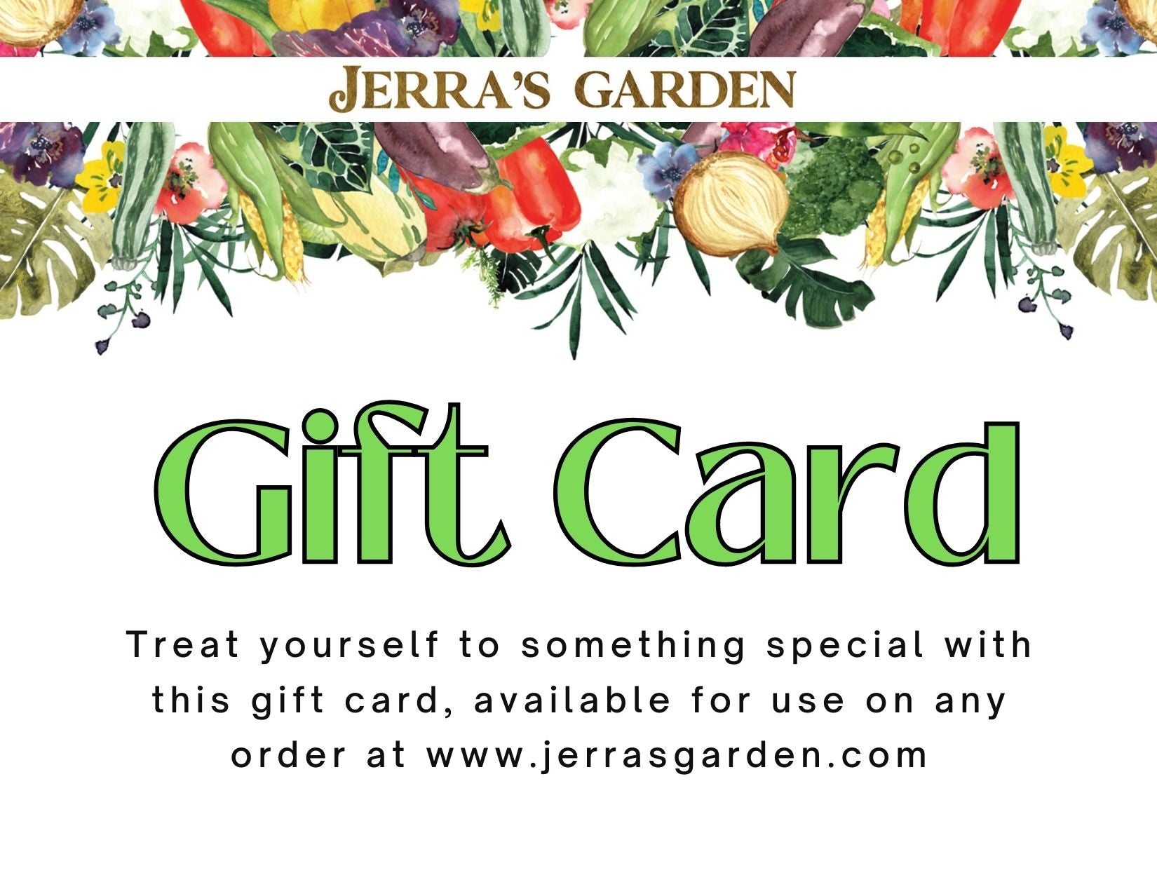 Gift cards make the perfect gift for any gardener! Gift cards are redeemable on orders placed at www.jerrasgarden.com. This is a digital gift card that will be sent to the email address provided during the check out process.